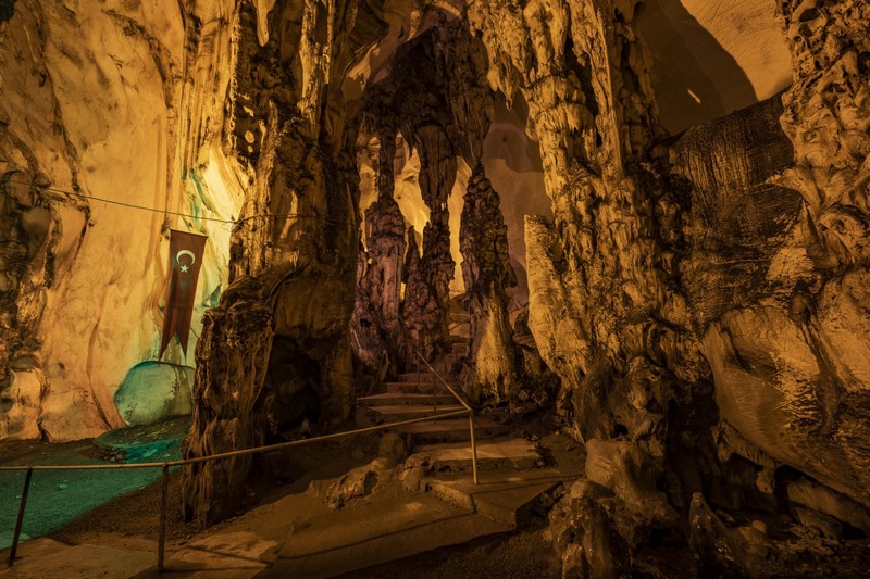 Antalya’nın Gazipaşa ilçesinde yer alan ve ülkemizin en uzun mağaralarından olan Yalan Dünya Mağarası’nın ilk 450 metrelik bölümü ziyarete açıktır. Ziyarete açık kısımda 3 büyük salon bulunmaktadır. Mağara içi sıcaklığı mevsimden bağımsız olarak 28 derece ve nem oranı yaklaşık %70 tir. Haftanın her günü mağarayı ziyaret etmek mümkündür.